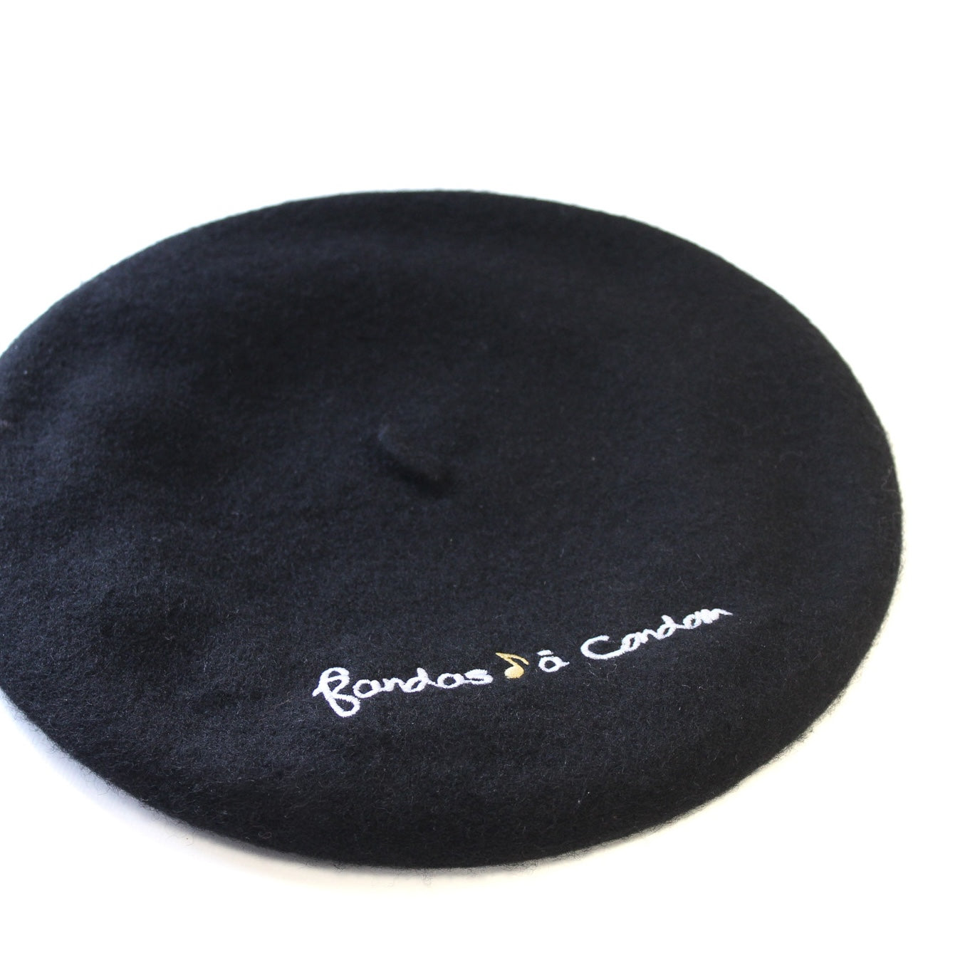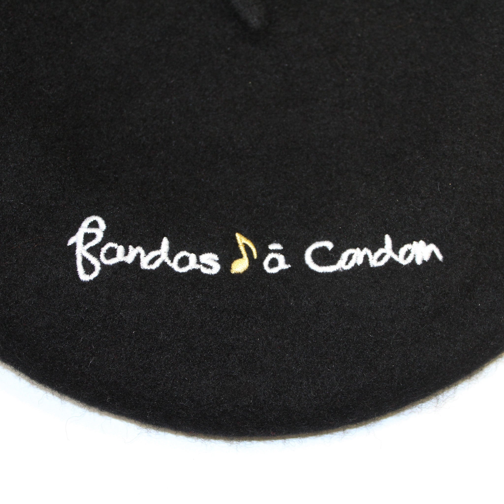 Explorez le charme du béret, un accessoire classique qui combine héritage traditionnel et tendances actuelles. Il est sublimé par une délicate broderie du logo "Bandas à Condom" en fil blanc et d’or