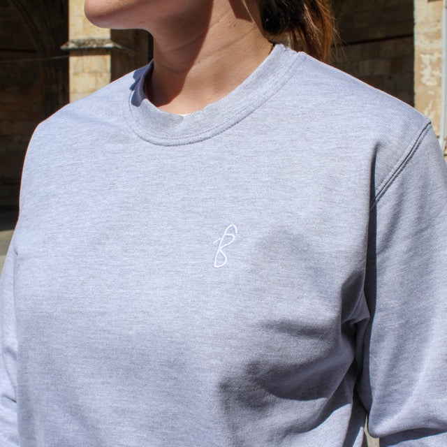 Sweat-shirt à col rond gris brodé