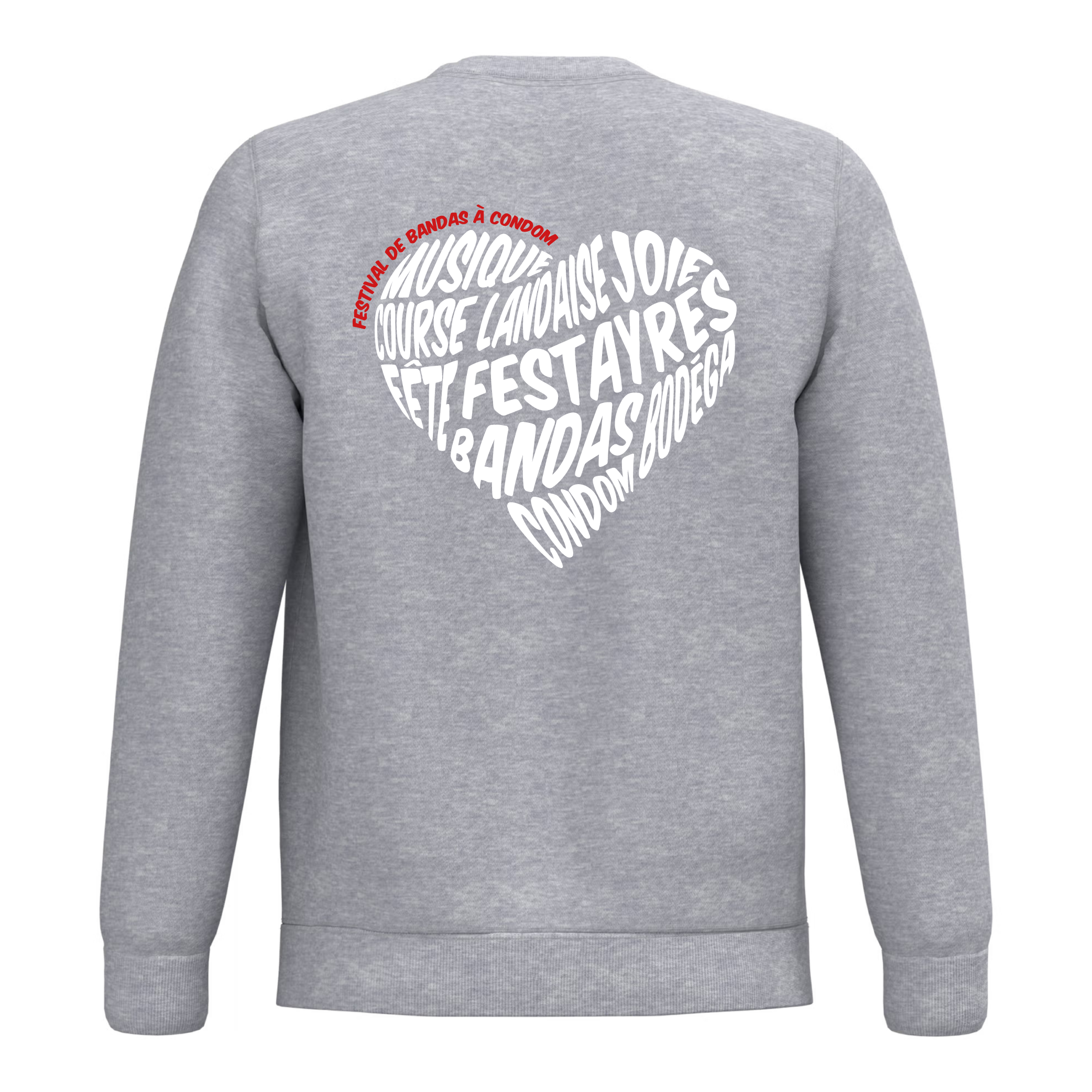 Sweat-Shirt gris chiné à col rond et logo discret brodé au fil blanc, idéal pour un porté quotidien et décontracté. 80% coton, 20% polyester, 280 g/m² Marque officielle déposée : Bandas à Condom®